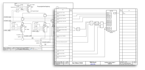 Beschreibung Für die softwaremäßige Umsetzung der Anlagensteuerung in der Hauptleittechnik wurden Regelschemata und Funktionspläne für dei Bereiche Rostkühlung, Aufgabetrichter, Entaschung, Hydraulik und Feuerungsleistungsregelung erstellt.